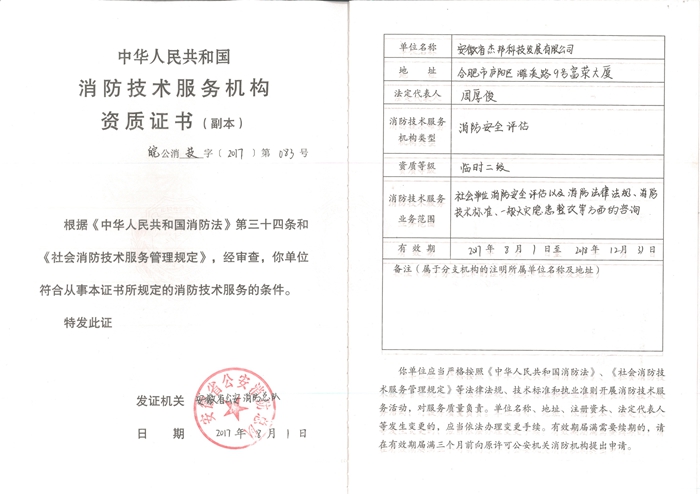 安徽省杰邦科技發展有限公司為科技型民營企業,2003年11月成立,注冊資本300萬元。辦公場所合肥市廬陽區濉溪路9號富榮大廈26樓。近20年來,公司長期從事安全評價、安全生產標準化評審、安全咨詢、安全培訓、消防安全評估等技術工作。現有安全評價資質證書(編號:APJ-(皖)-018),業務范圍:石油加工...